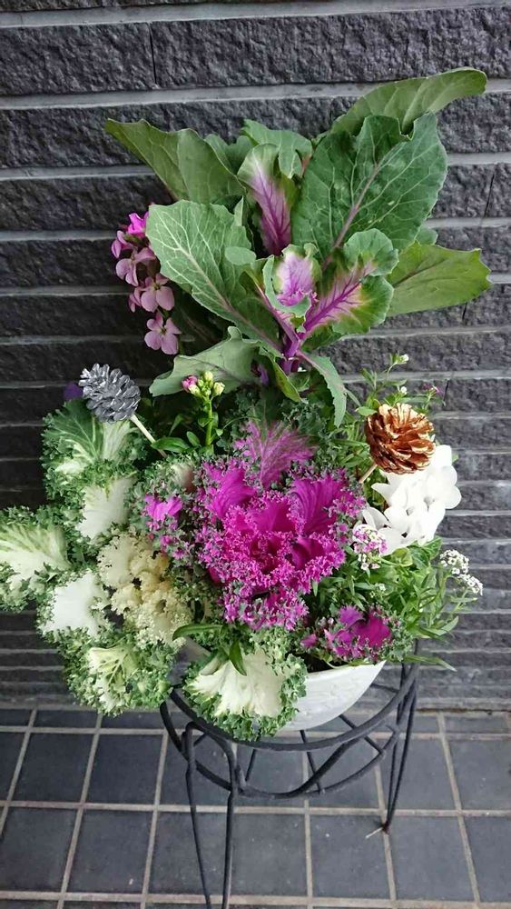 真ん中のピンクの葉牡丹でちょっと引き締まったかな?