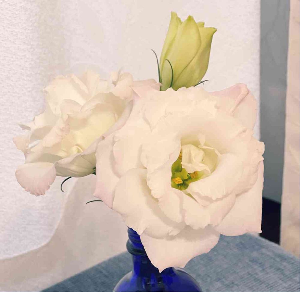 トルコキキョウ 枝分かれしていた蕾を挿しておいたら綺麗に咲きました♪