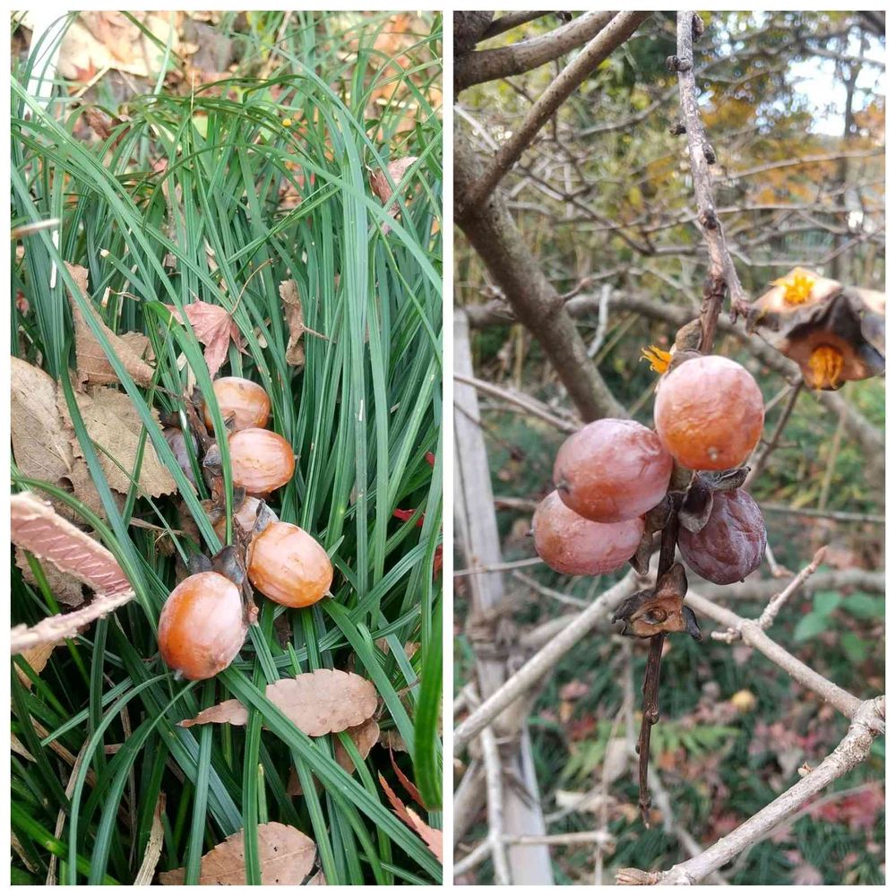 こちらは実もしわしわ~食べられた後が見え、へたの部分に残った果肉はまさしく柿‼️