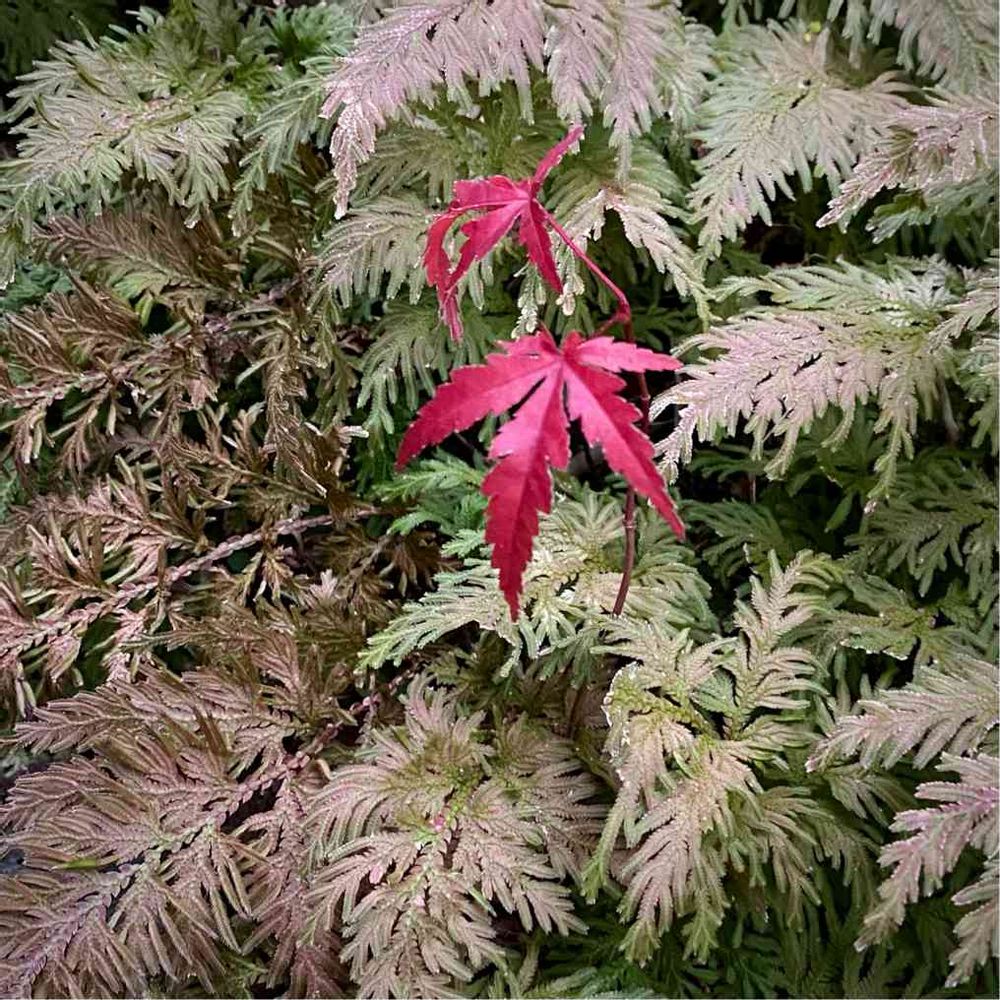 この実生のモミジ小さくても真っ赤になって、可愛いですね〜!!…🍁