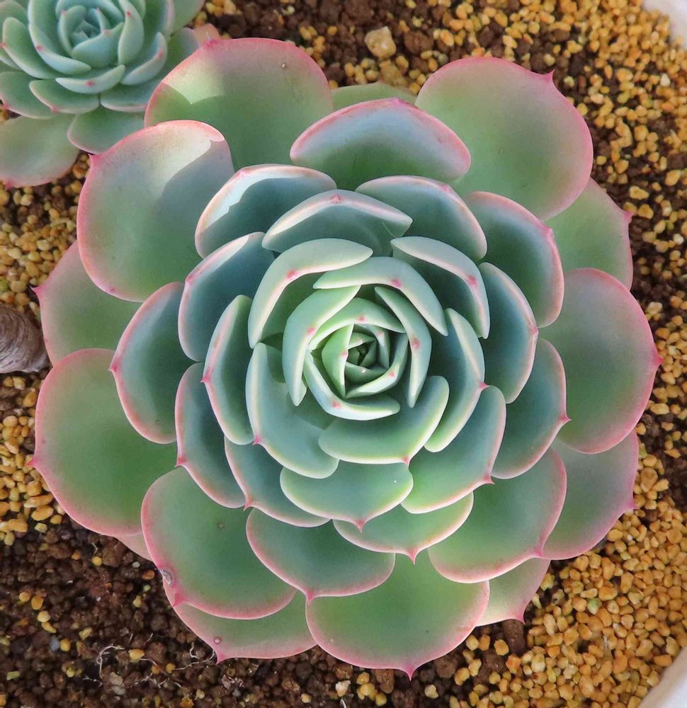 親株の根元から出てきた小さなのをカットして独立させた子株がいつのまにか親株とほぼ同じくらいの大きさに。薄いけどピンクの縁取りがきれいに入る様は親子だけあって元株とそっくり。