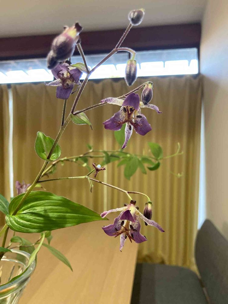 ホトトギスはお花は生けて、根っこの方は植えました。きちんと根付くといいです( ´∀`)