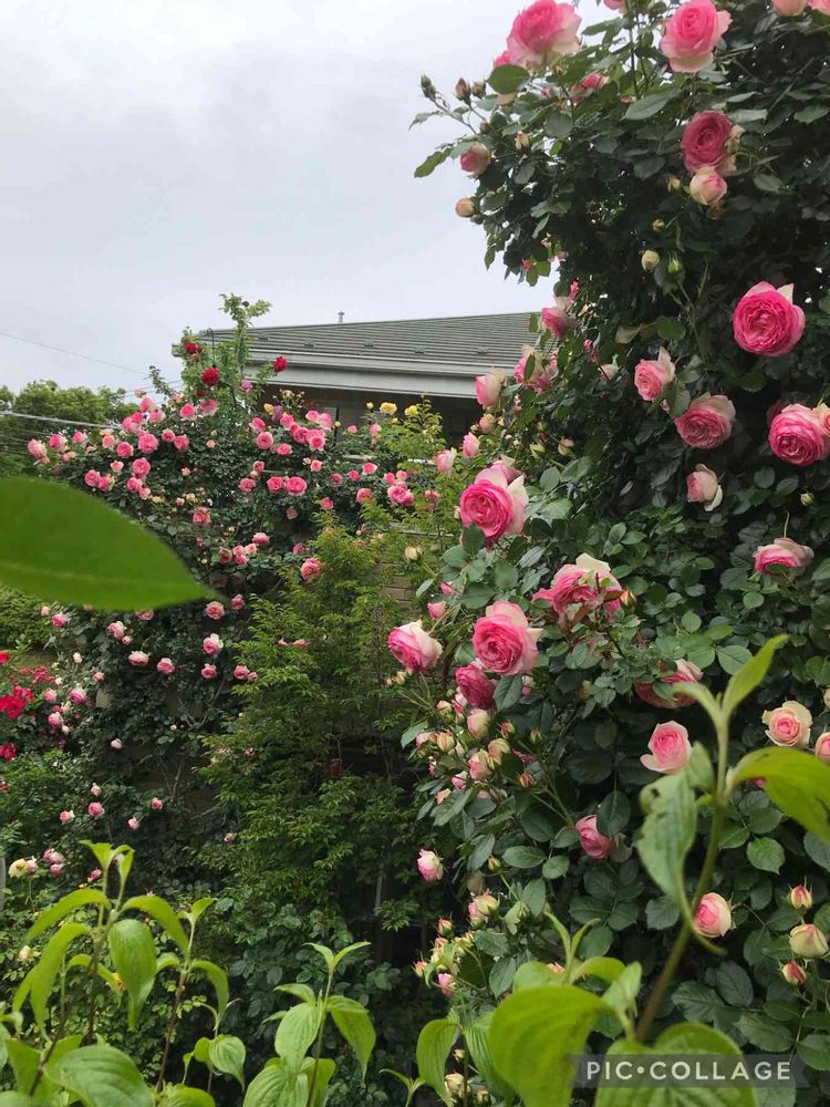 車庫の屋上から撮影しました。(2021年5月)今年の秋バラは今までこんなに咲いたことがないくらい返り咲きました。枯れてしまうのではないよねと少し心配になります。植物は最後の力を振り絞って花を咲かせますから。