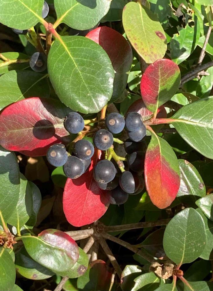 おはようございます! シャリンバイ❣️ 渋い黒い実🥰 😯常緑樹なのに紅葉!どーして?