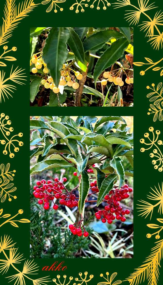 南天,千両、万両、ピラカンサなど実がなる木が多い‼️