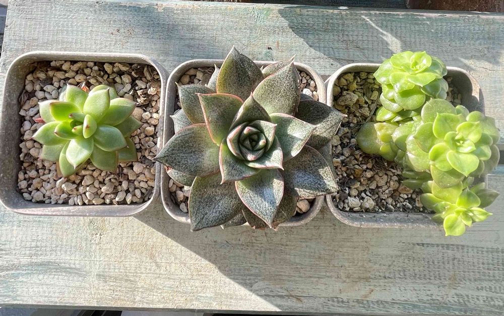 最初はほとんど同じ大きさでしたが、うちに来て1年半、小さくなったのや 大きくなったの 子株❓でモリモリしたのと色々です。
