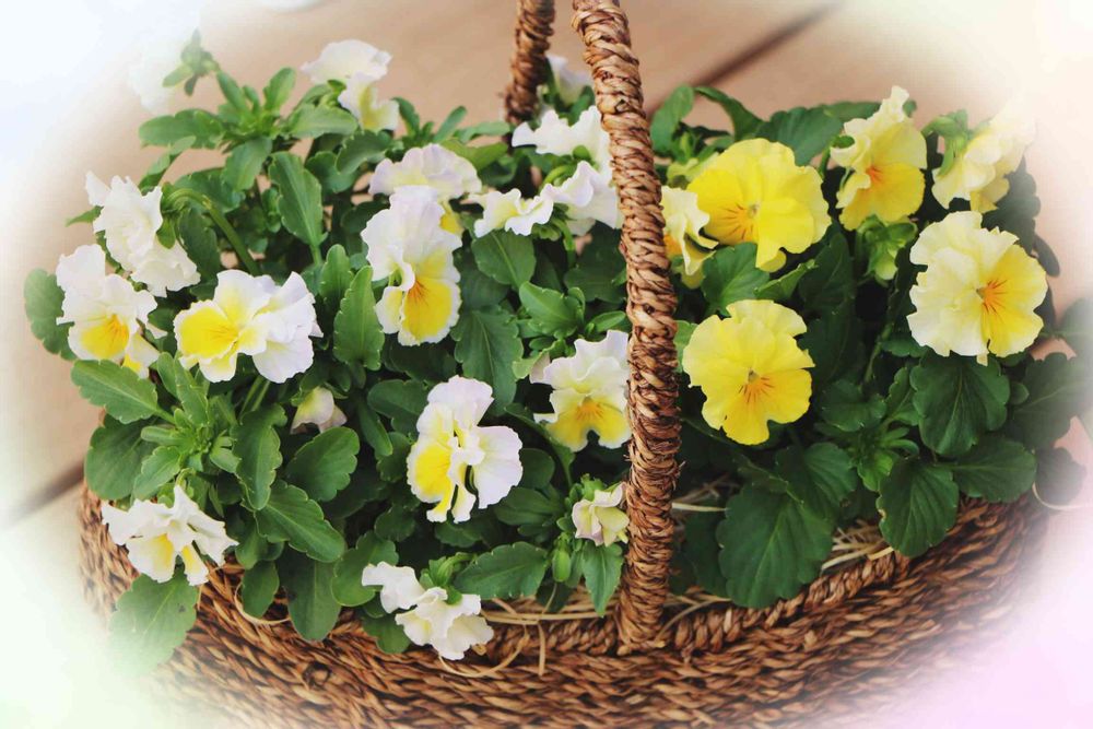 可愛いビオラの花籠、フリフリが生き生きしていてステキですよ〰💛🤍🍃✨✨