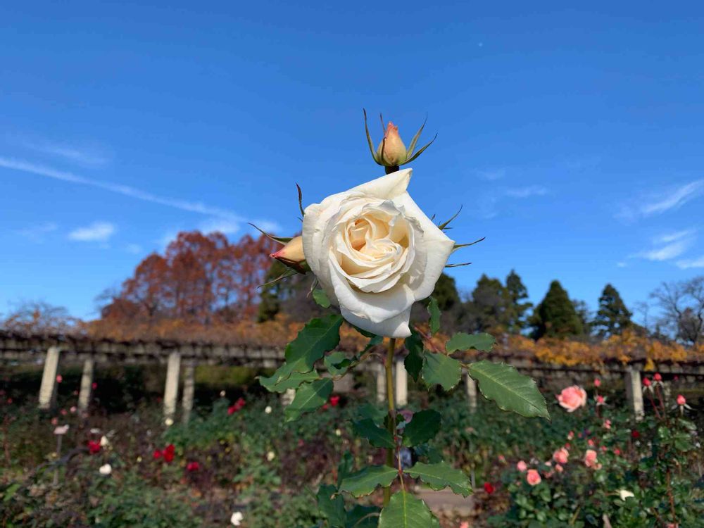 東京の神代植物公園、バラ園のブライダルホワイト🌹