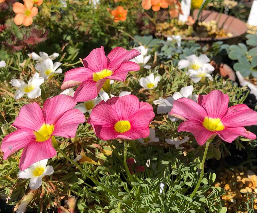 暖かくなってオキザリスが色々と開いてきました☀️。早くもオキザリス オブツーサ ハイピンクが咲き始めています💕