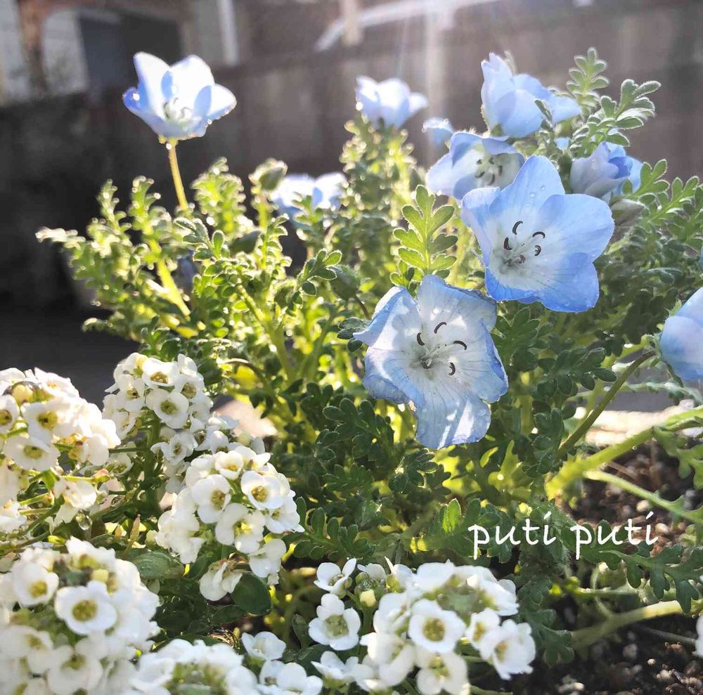 ネモフィラは無敵に可愛いよね〜🌸 このブルーは他の花にはないよね💕今日ホムセンでどう見てもネモフィラの形で真っ白の名前が特徴的だったんだけど…(;-ω-)ウーン出て来ない_(:3」 ∠ )_