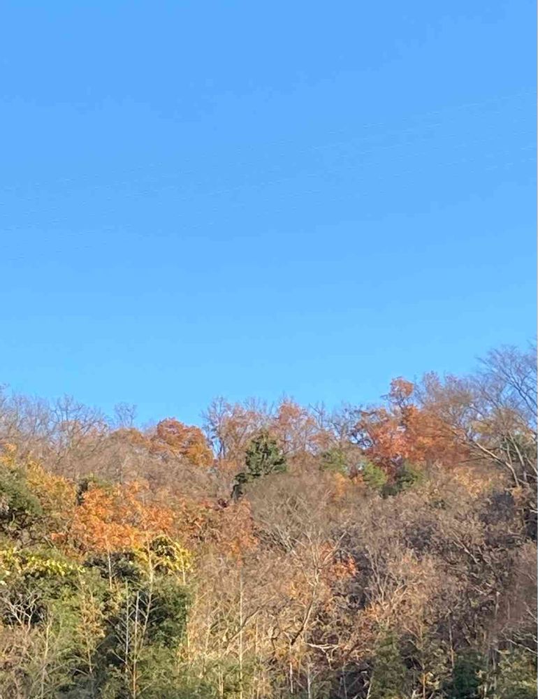 今朝8時半の青空と枯れ葉の木立