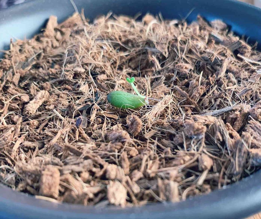 落ちた葉っぱ転がしてたら本当に芽が出てきた…👀❗と感動している多肉初心者。