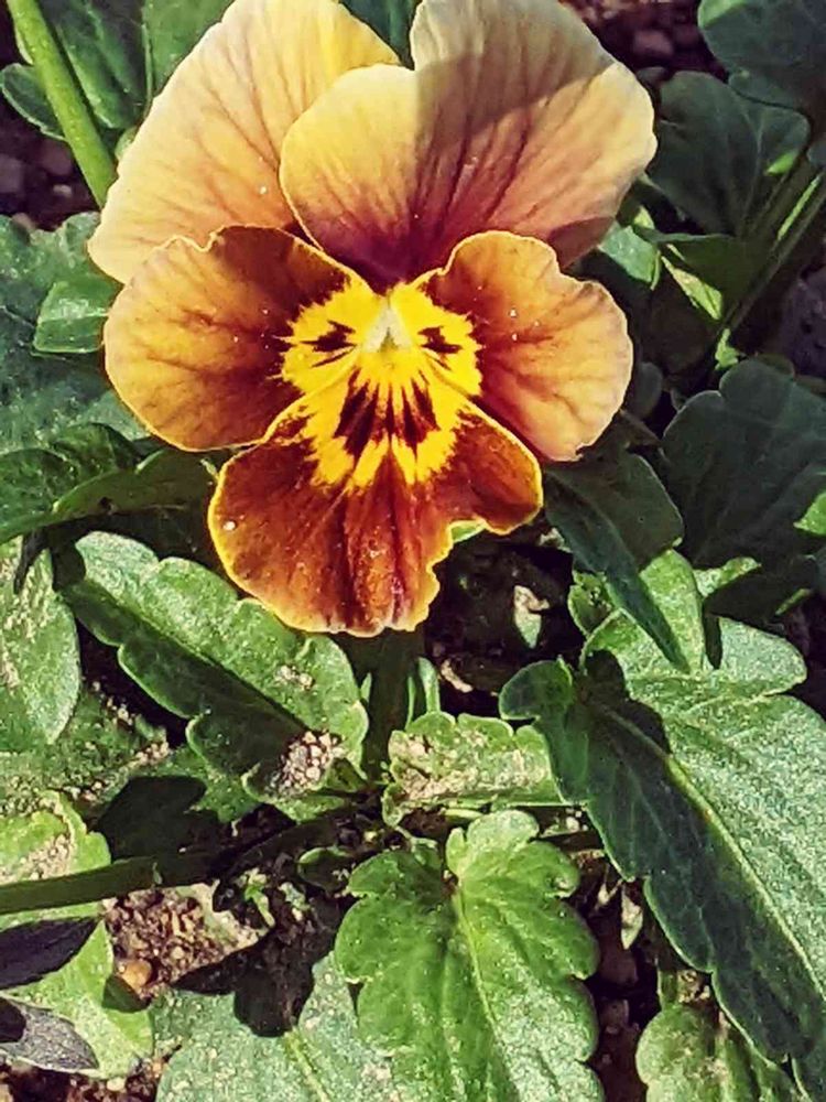 お出かけの途中、出会ったオジさん顔のパンジー 少し情けなさそうなお顔😅