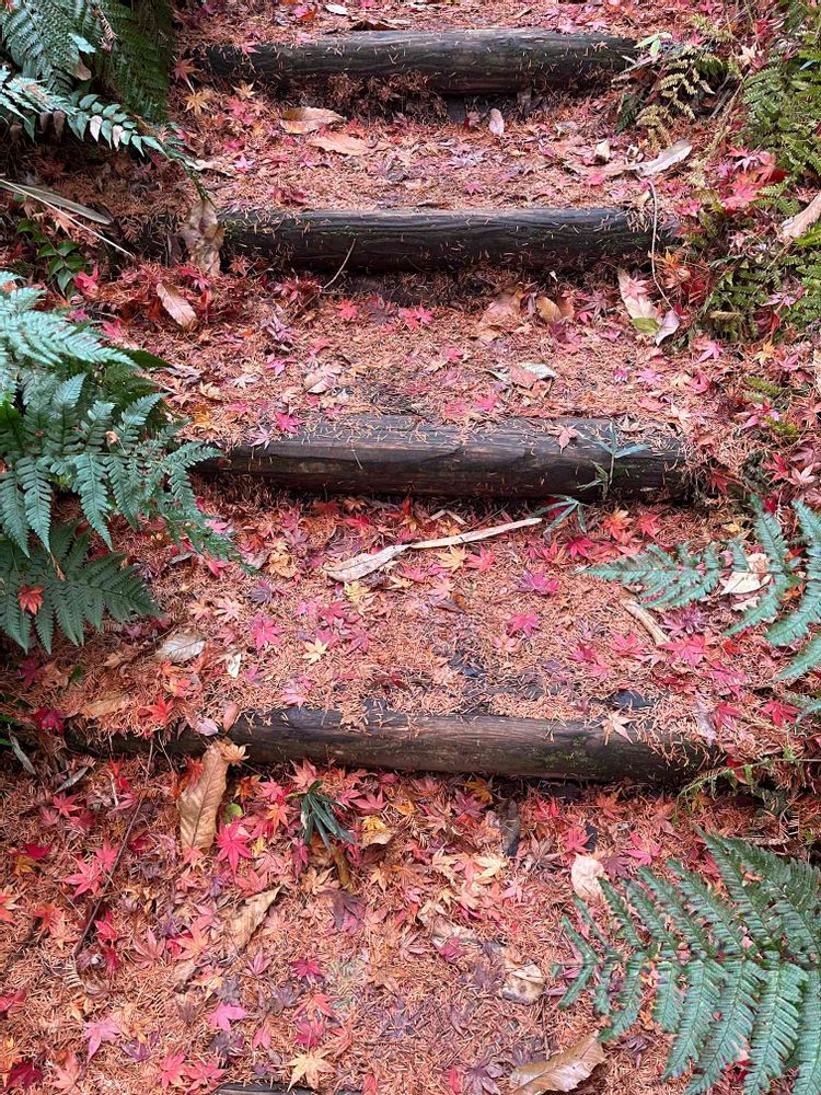 メタセコイアとモミジの落ち葉を踏みながら歩く道💕