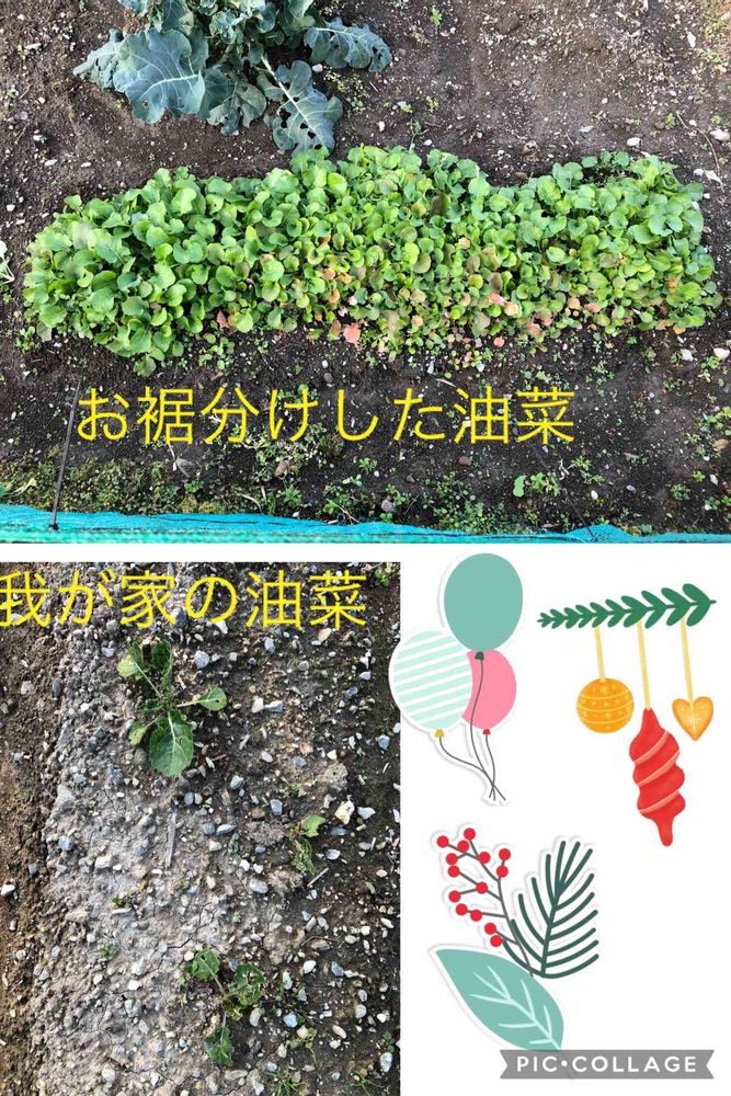 でも、お裾分けしたお宅の油菜はモリモリです 一つもじいて味見されていました、甘いって