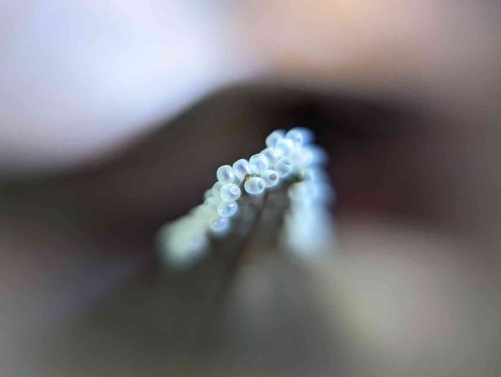 最初見た時は、粘菌?と思って喜んで、よーく見ると、卵の抜け殻。