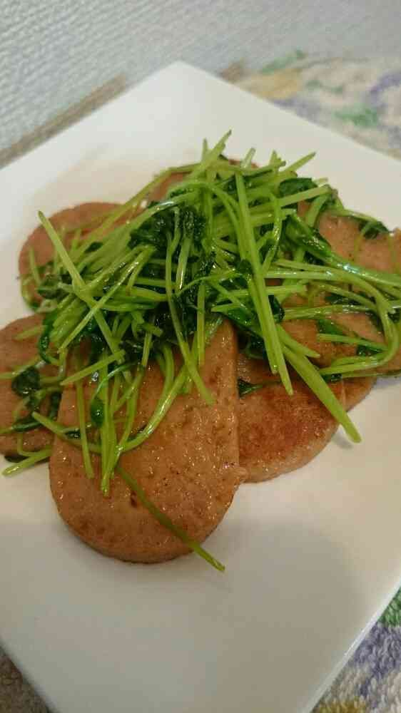 リボベジ豆苗さん、魚肉ソーセージと一緒に炒めてみました(^^)/