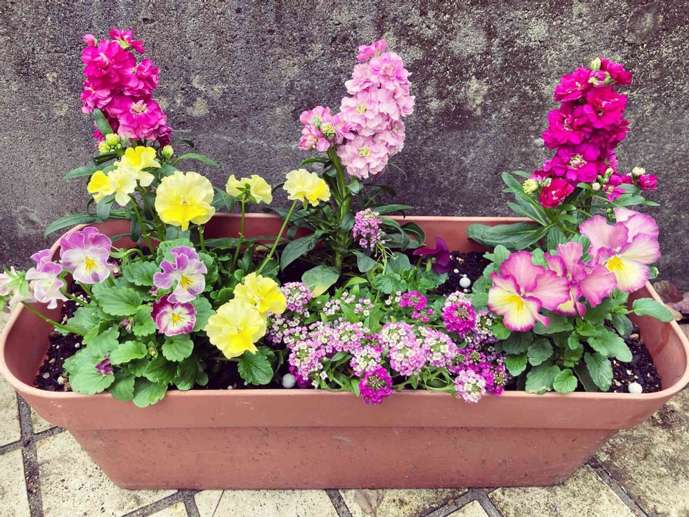 いいなと思ったアリッサムは小さなビオラとの混植で、パンジーミニフリフリも2株植えだったので、花いっぱいな感じ✨