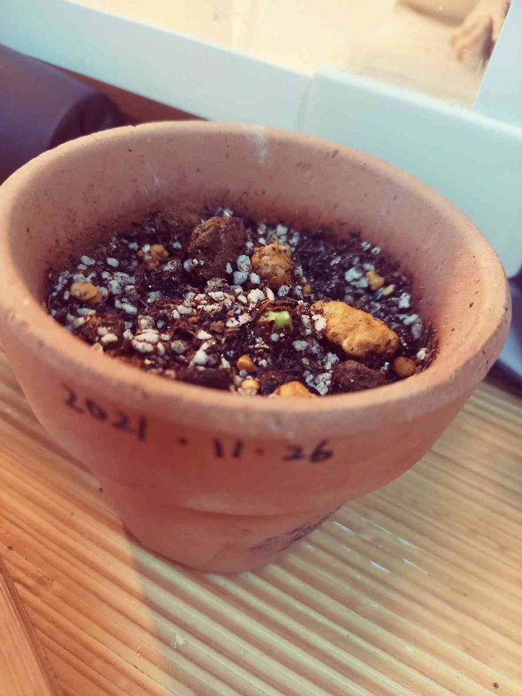 11月26に植えた斑入りクワズイモの赤ちゃん。
