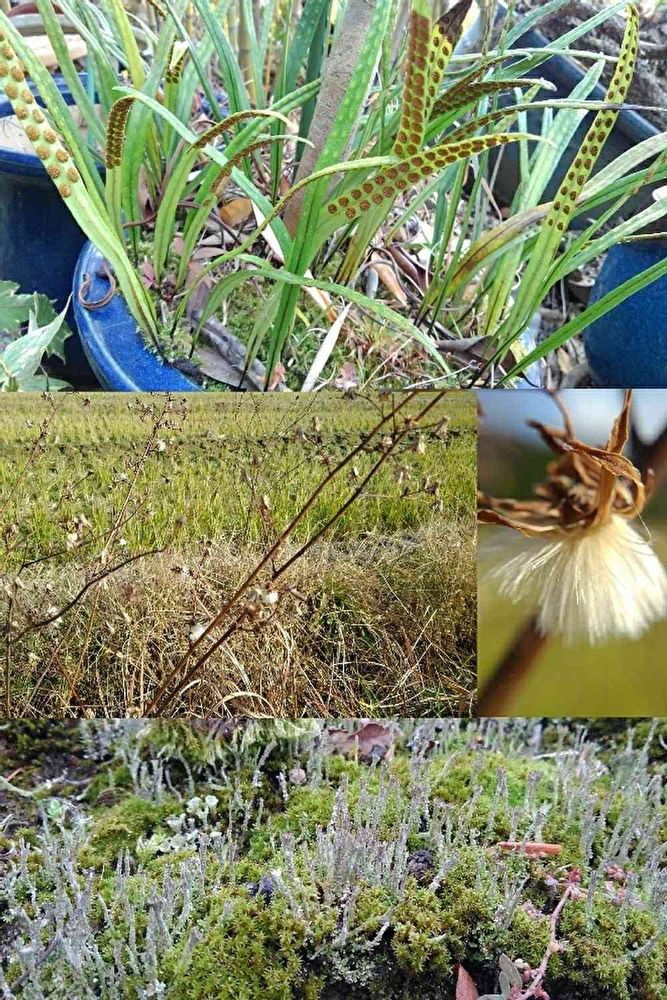 ※教えて頂き1番上は「ノキシノブ」というシダだとわかりました🌿茶色いのは胞子みたいです。