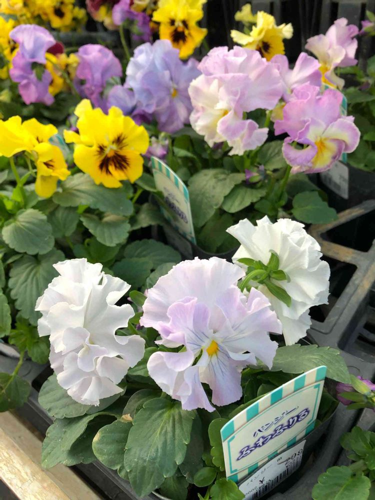 昨日行った、グリーンファーム あい菜FLORA店に、可愛いパンジーがいました😊 パンジー ふわふりる のタグがありました❣️