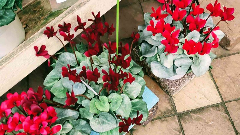 庭園内のお花屋さんで、細ーい💜シクラメンに会って〜🤎ストショコラ✨シルバーリーフとビターチョコ〜葉が薄緑で〜美しい💓💕場所取らないし、中々、良い感じでした〜🍀♥╣[-_-]╠♥