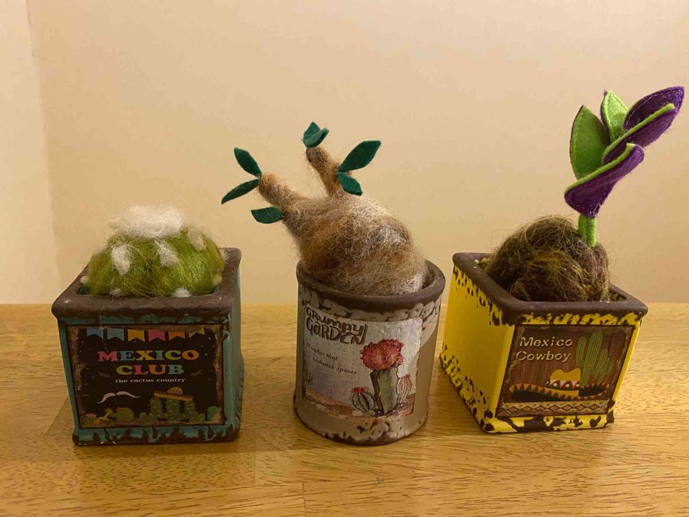 さっきの鉢にフェルトの多肉を入れたらこんな感じ🥰