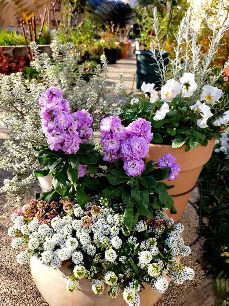 10月に植えたストックとアリッサムの寄植えが、モリモリ成長中💕可愛さ倍増しております💖