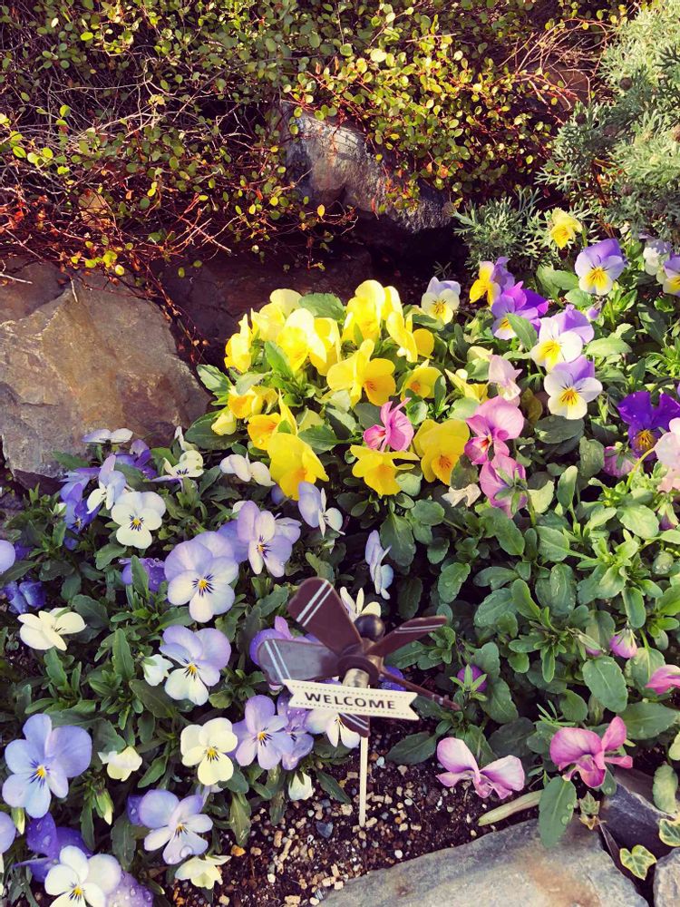 種から育てたビオラが花壇一杯に咲きました😊