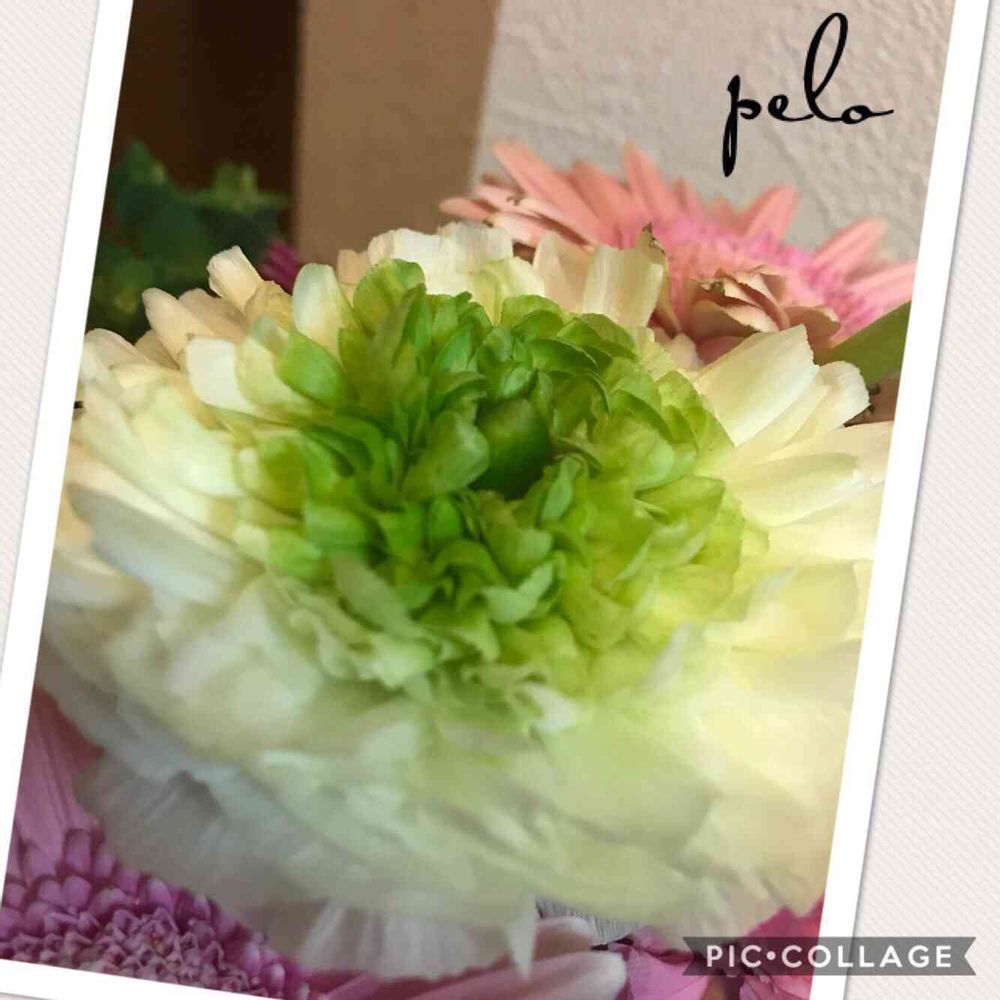 この子は切り花でウチに来てもう2週間以上になるの☺️最初は白が多くて、だんだんグリーンが多くなって来たよ(^。^)