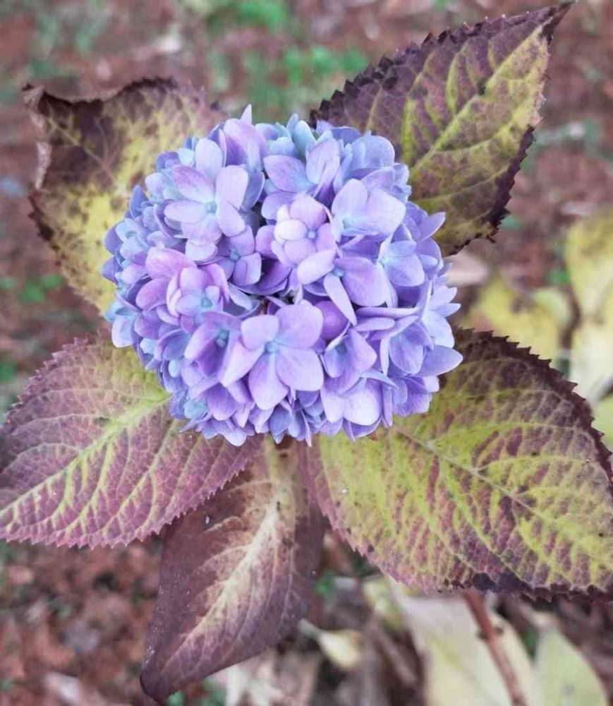 アンティーク色の葉の紫陽花、冬空に頑張って咲いてとても綺麗です💕