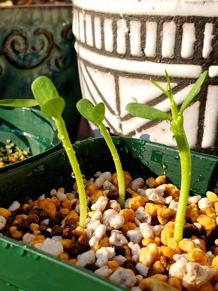 あまり徒長してほしくないので、今日も日光浴。