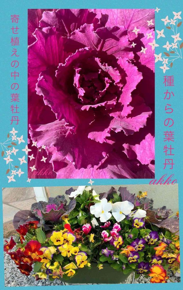 ひみつのアッコちゃんさんの広い庭,我が家の種からの葉牡丹,娘の家の寄せ植えの投稿画像