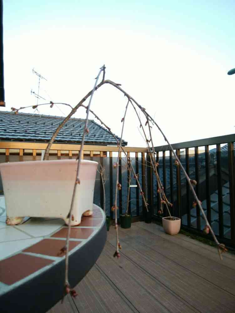 元からうちに居てるぉチビな枝垂れ富士桜さんは、まだまだ花芽が小さいです。