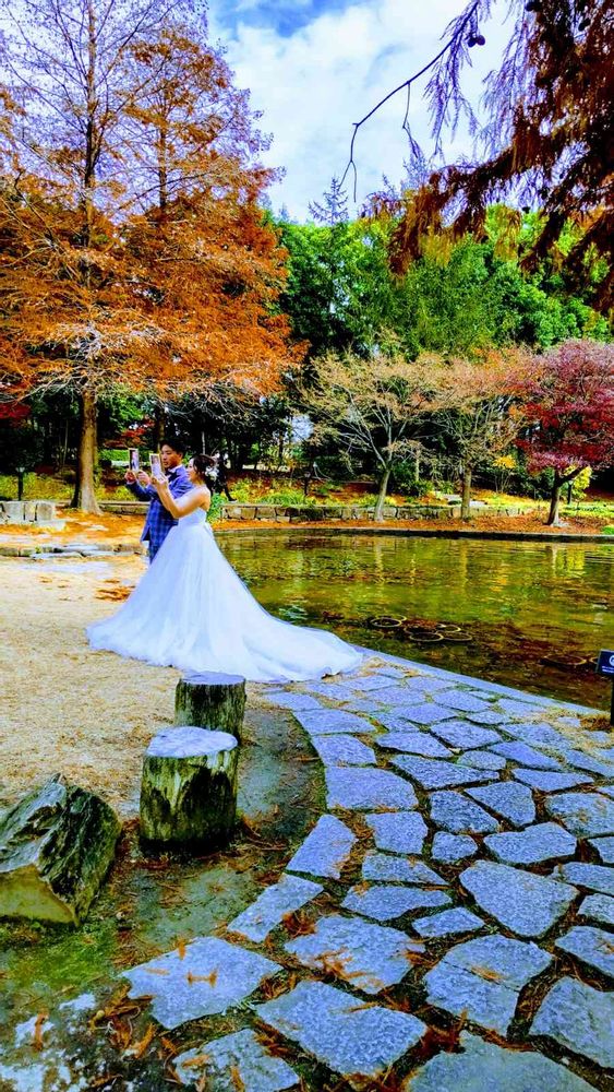 庭園内で初めて、前撮りのカップルに〜💓💕🎊🎉コロナ禍の中〜頑張って!〜お幸せに(✿^‿^)💐