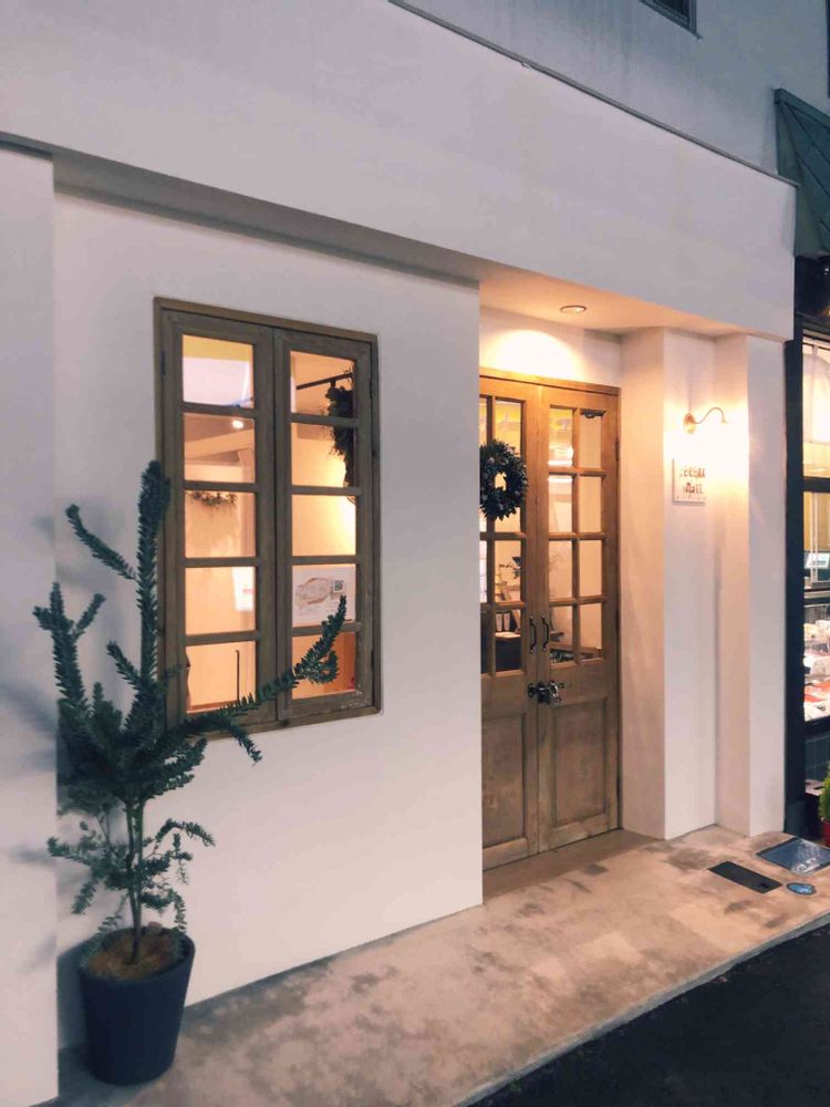 アンティークなランプシェードや真鍮のドアノブ 無垢パイン材のドアがステキでした
