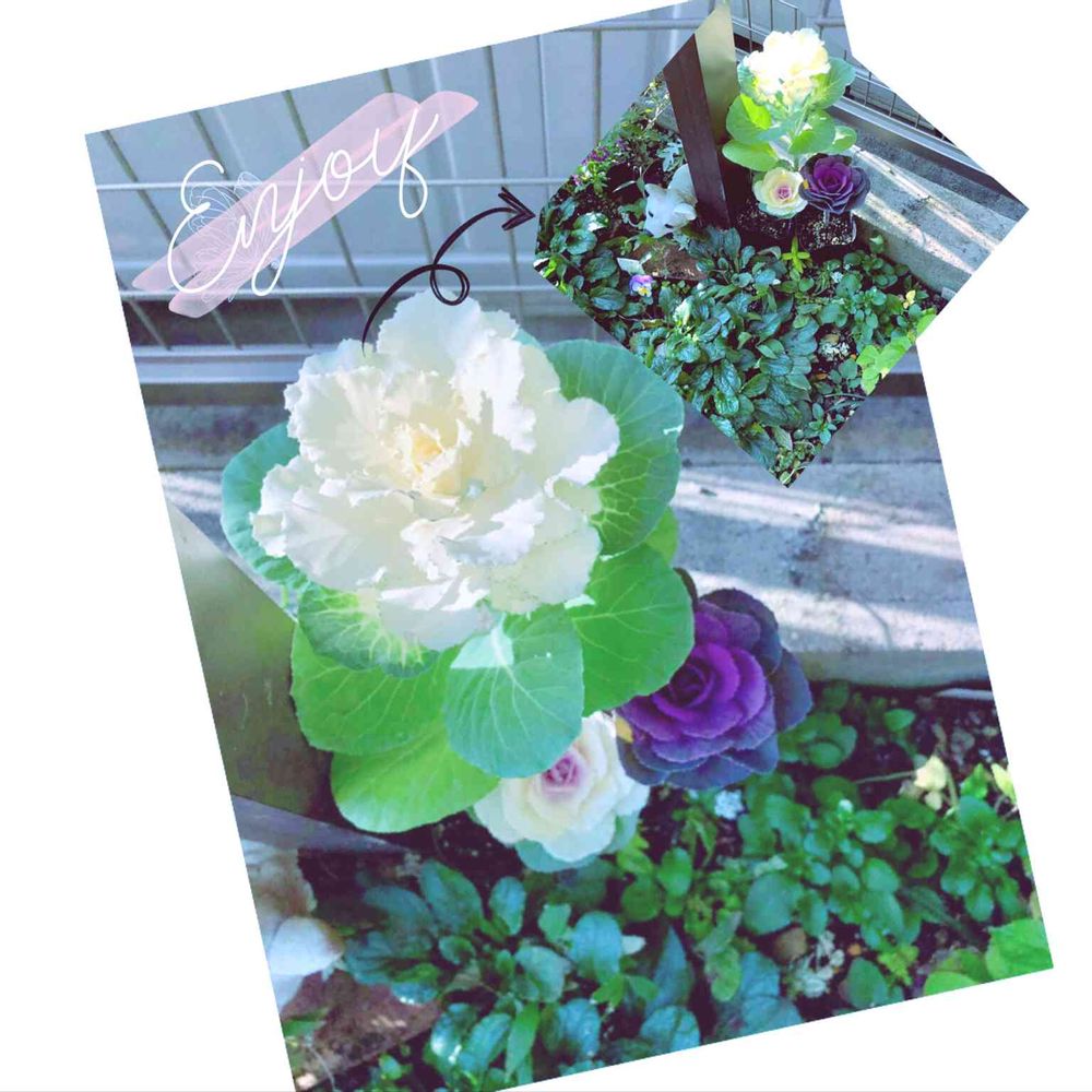 父がくれた葉牡丹とっても綺麗だけど高さがあるので単品で一つだけ植えてると何にか違うなぁ💦と思って追加で2株葉牡丹を寄せて植える事にしました♪
