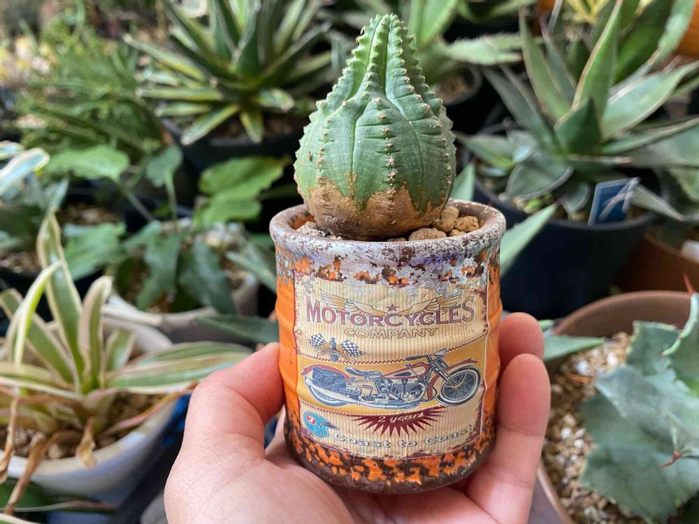 これはアメリカンなシリーズの鉢に入ったインファウスタ。穴をあけて使っています😁