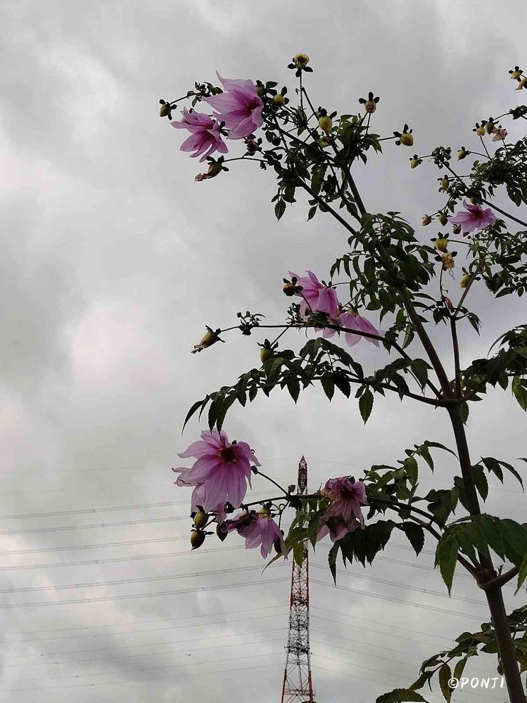 あまり良く無い天気の中、皇帝ダリアが、頑張って咲いてますね。