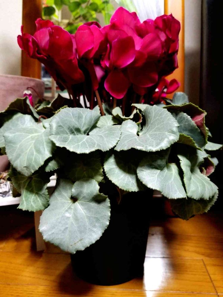 写真では上手いこと色が出なかったんですが、深紅の花色とシルバーの葉っぱがカッコ良くて、自分へのご褒美に購入しました(^^)