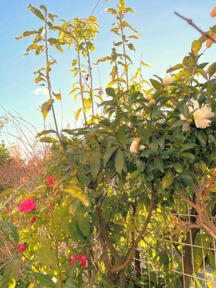 垣根のさざんか、赤と白