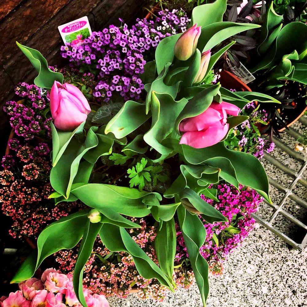 今年の春のアリッサムとアネモネとチュ-リップのトリプルデッカ-🌷このチュ-リップ今年も植えたけど咲いてくれるかな🐣