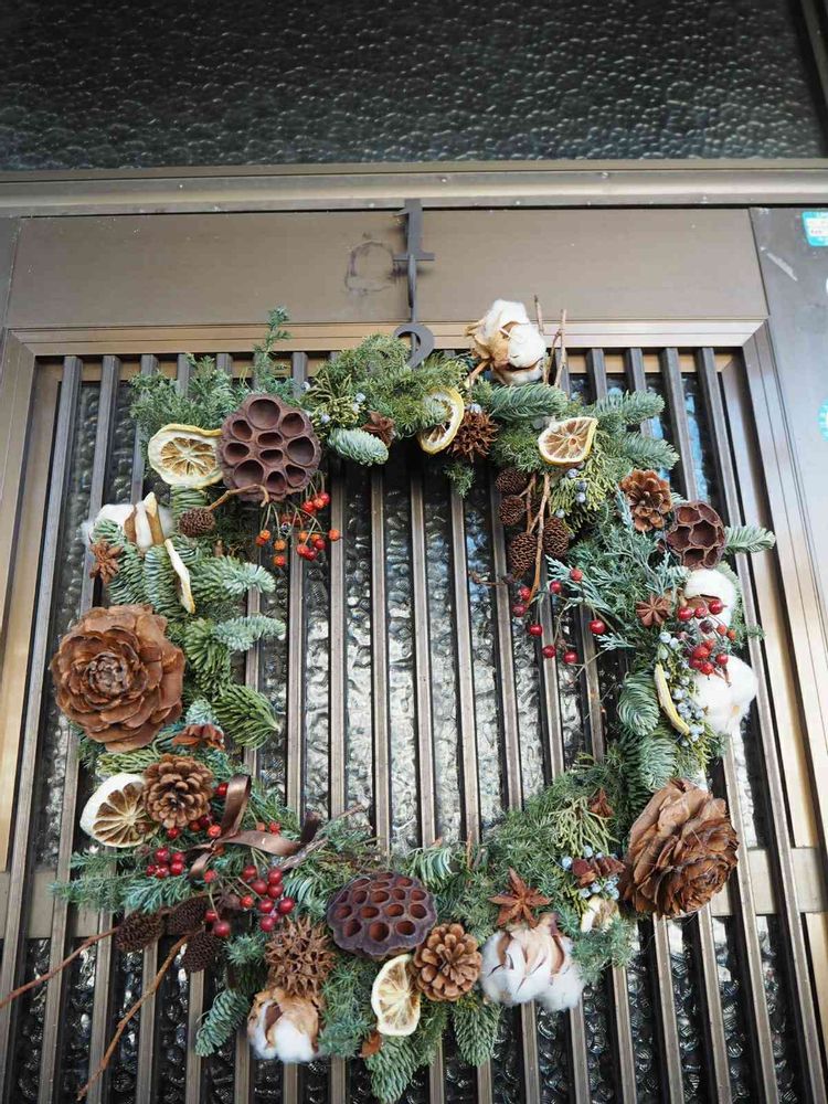 弟子もいつかこんなリースを作りたいものです…!