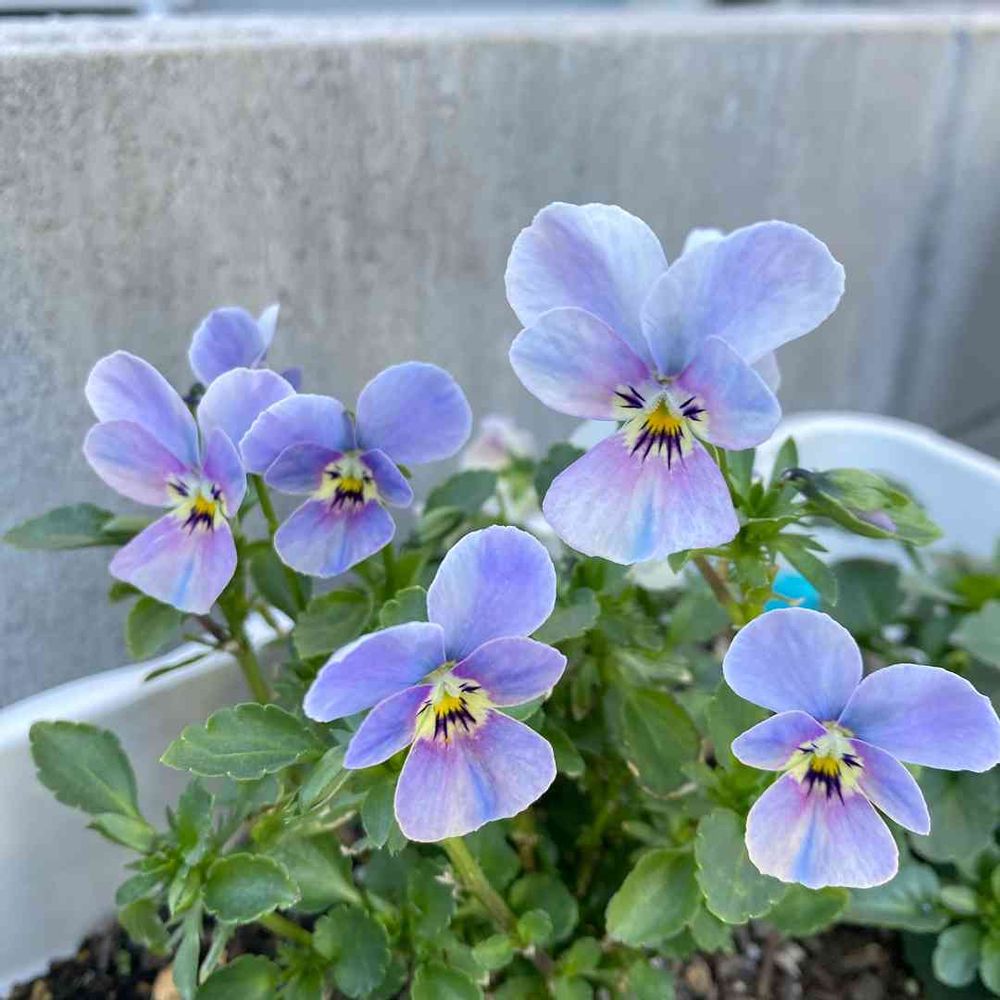 風が強くてうまく撮れなかったけど、変わった色のバニー系ビオラちゃん😍