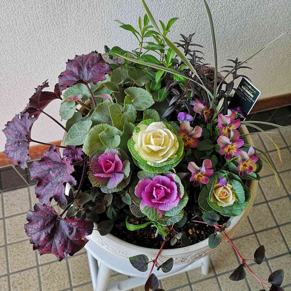 玄関,ガーデンシクラメン 寄せ植え,葉牡丹!の投稿画像