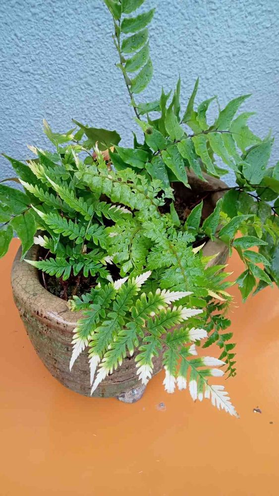 ヤブソテツと一緒に山から迎えたのでしたが3種類のシダの寄植え 名前のわからないシダに変化がありました。🤔🔎👀🔍