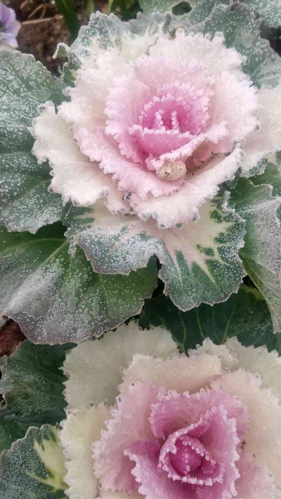 葉牡丹に降りた霜が寒そうだけど とても綺麗💕💕💕