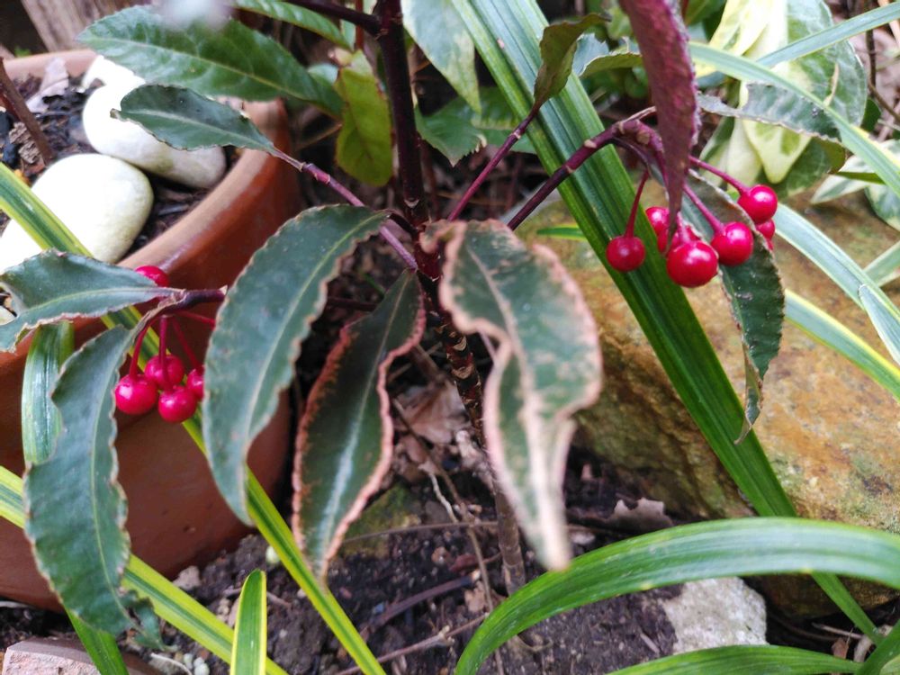小さな庭,斑入りの葉っぱ,マンリョウの実の投稿画像
