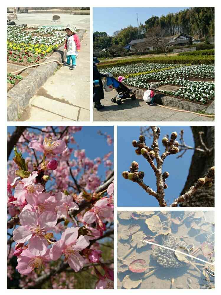 タンポポはまだだけど、ちっちゃなイヌフグリのあ花を見つけては、「カワイイおはな、いっぱい」って、喜んだり、まだ固い蕾の桜の木を見上げて、「まだ、ねむってるぅ」って、、