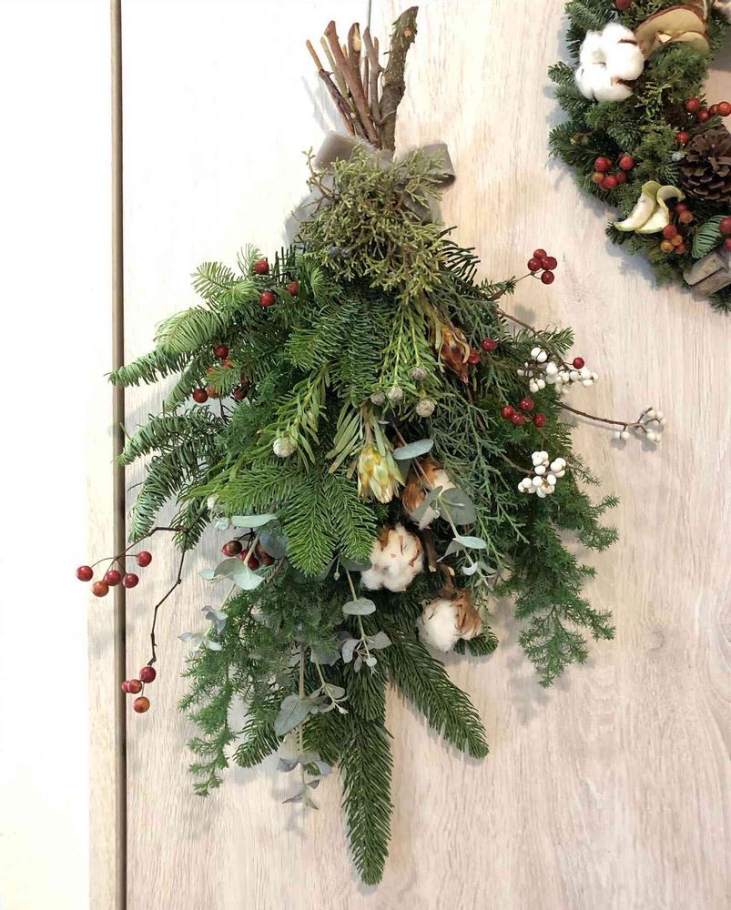 フレッシュなオレゴン産モミをたっぷり使った香りのいいスワッグ。リボンはシンプルなもので。